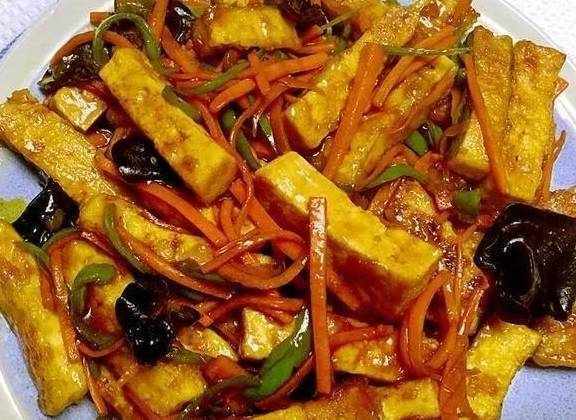 豆腐;木耳;胡蘿卜;香蔥;番茄醬
