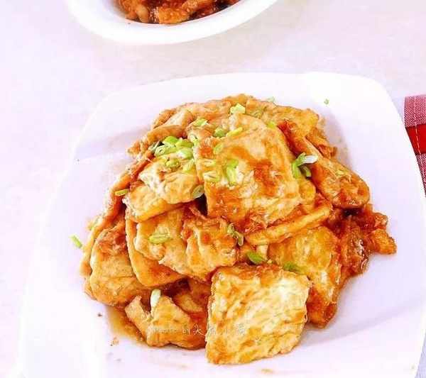 2、豆腐從鹽水中撈出瀝幹水分,熱鍋涼油,放入蒜末爆香,放胡蘿卜木耳翻炒,聽到木耳爆出響聲,放豆腐翻炒,至金黃色,放調好的汁小火咕嘟一下,放一勺鹽,待湯汁濃稠後關火,出鍋裝盤撒上小香蔥即可。