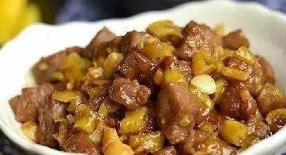 1、牛肉切成小粒,加入生抽1湯匙、花生油1小茶匙、芝麻油幾滴、淀粉1湯匙,水1湯匙,用手攪拌牛肉,給牛肉做按摩片刻