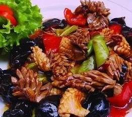 17、放入雞胗塊,一同翻炒,