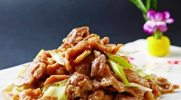 3、鍋內留油25克,將羊肉片、大蔥、鹽、醬油、料酒、味精、水淀粉、麻油放入,大火翻炒至熟,盛入盤中即成。