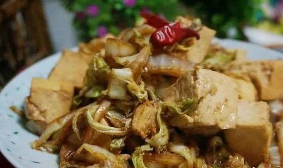 5、放入煎好的豆腐翻炒,放鹽翻炒均勻即可出鍋。