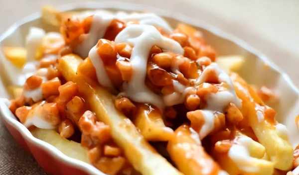 -材 料-花生蛋白素肉絲、冷凍薯條、番茄醬、椰漿、熟糯米粉、黑胡椒、意大利綜合香草、白糖、植物油