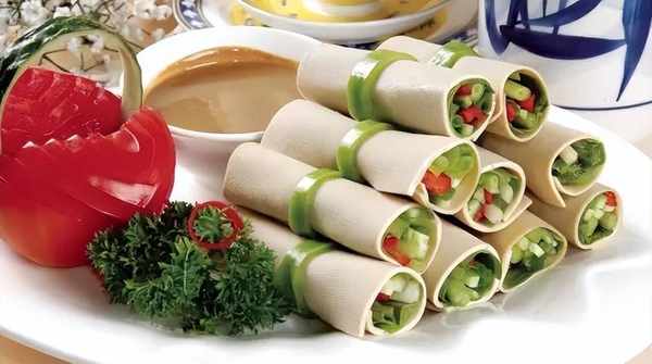 做法:1.準備蔬菜,香菜小香蔥淡鹽水浸泡洗凈,黃瓜洗凈;豆腐皮用清水沖洗一下。