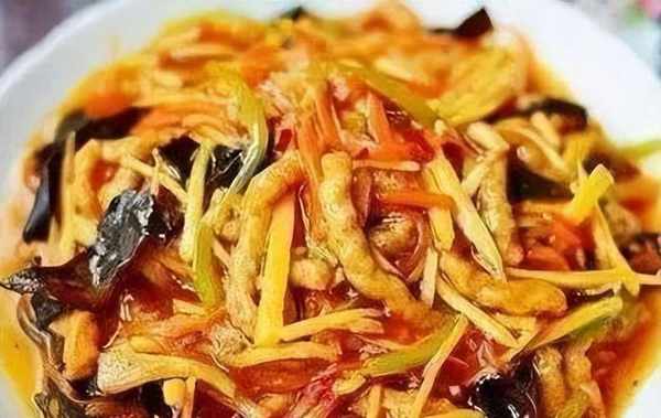 做法:1.將瘦肉切成絲,加入黃酒,滴幾滴清水,調入生抽,調入老抽,順一個方向攪拌,使肉絲吸收水分。加入生粉,拌均勻,放2茶匙花生油,拌勻醃制5分鐘。