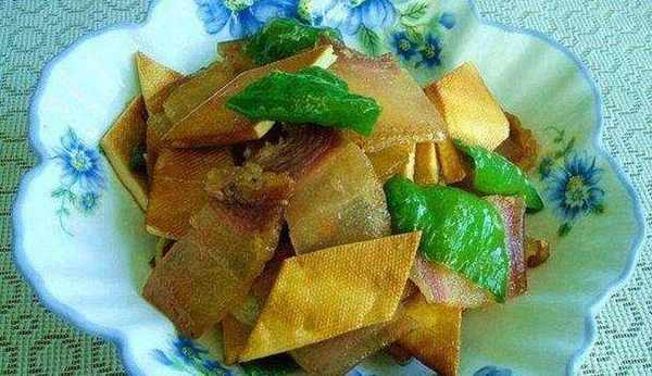 做法:南瓜藤一把,摘取老莖、老葉,把葉莖外面的一層帶絨毛的薄皮揭掉,洗凈;