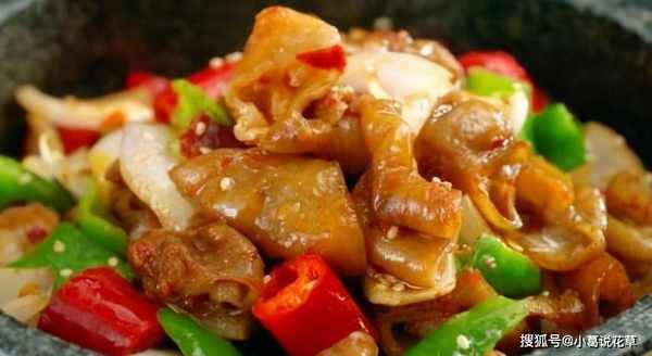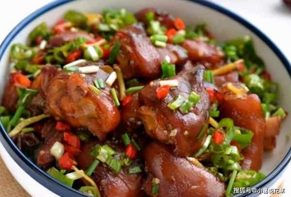 16.將豬蹄倒入鍋中,加少許鹽迅速翻炒,根據色澤決定是否再加醬油;翻炒幾下後出鍋,裝盤。熱吃香辣軟糯,涼吃筋道不膩。