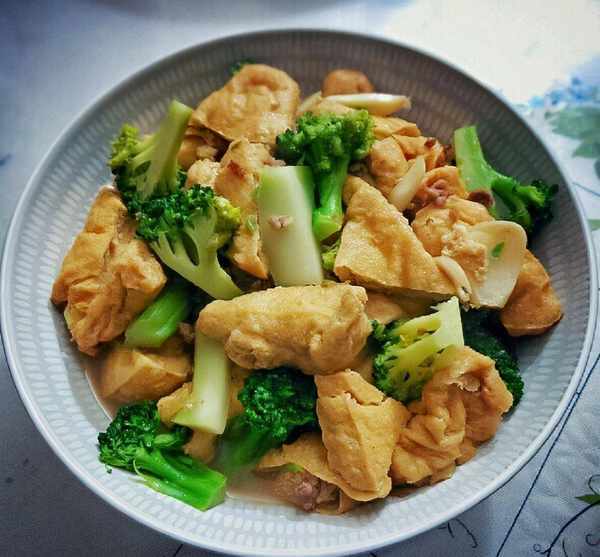 做法步驟:1.西蘭花洗凈掰成小朵,油豆腐過量