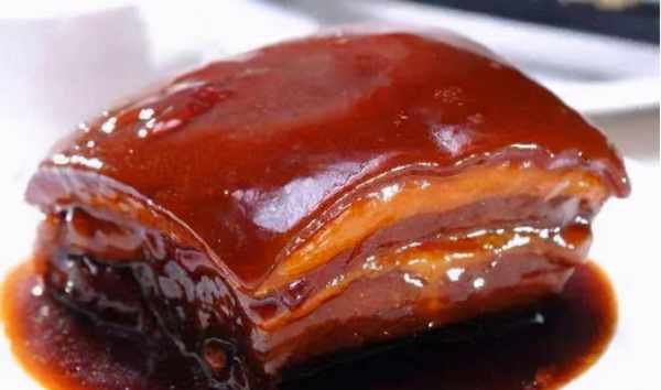 3、大火燒開轉小火燉兩個小時,取出肉,放入碗中蒸30分鐘,取出蒸熟的東坡肉,淋上煮好的肉汁和服務。