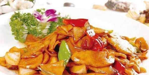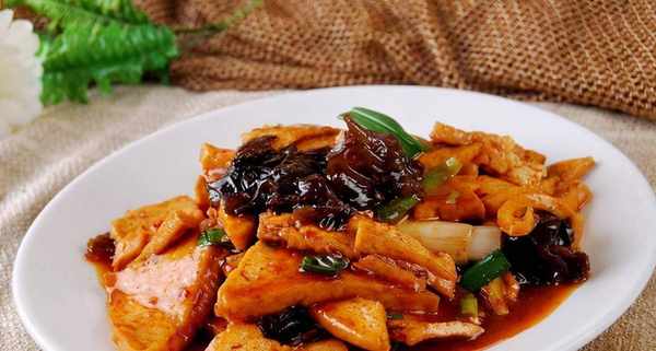 做法:1、五花肉切片,下油鍋炒至出油,微黃,加入蔥、薑、八角翻炒片刻。