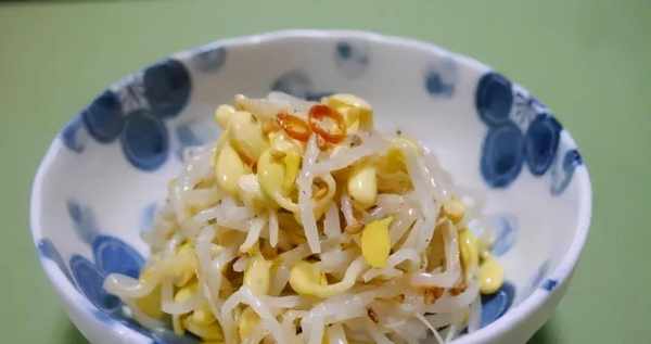 材料:黃豆芽400克,鹽一大勺,雞精適量,蒜頭3瓣,幹辣椒4條,香油一大勺,胡椒粉或黑胡椒粒適量,熟芝麻適量種子