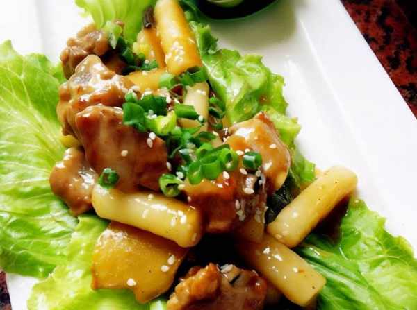 5、湯汁收2/3時,加入年糕,煮至年糕軟爛入味,湯汁濃稠不膩;