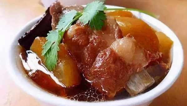 配料表:白蘿卜、排骨、冰糖、桂皮、花椒、八角、生抽、老抽、幹辣椒