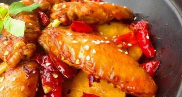 材料:雞翅、洋蔥、青椒、幹辣椒、蔥、薑、蒜、鹽、糖、料酒、老抽、生抽、醋。