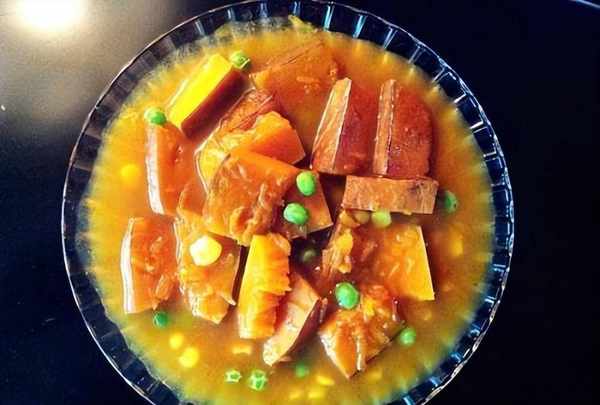 材料:老南瓜500克,油適量,咖喱適量,糖適量