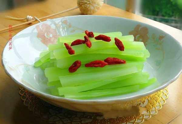 6.撈出汆燙之後的萵筍、枸杞,即可;(備註:湯可以喝,就是平常的枸杞茶)
