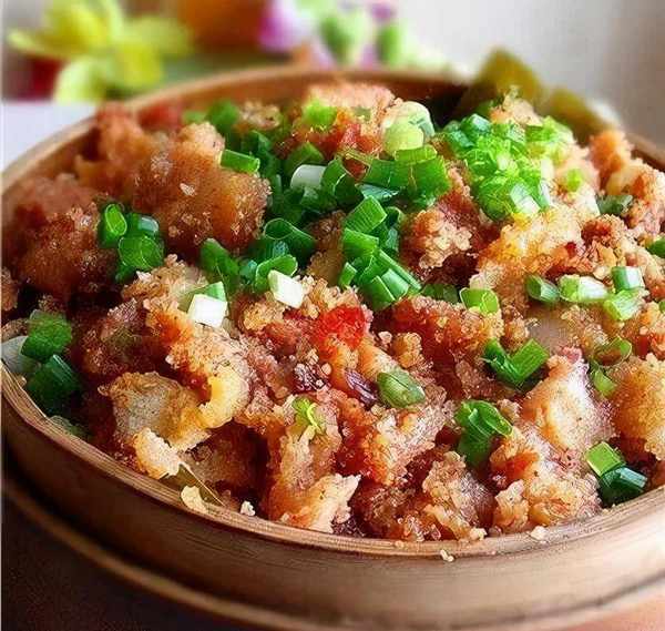 3、把薑絲、陳皮絲、蒜片、油條圈分別在熱油鍋裡過一下油,撈出與魚腸一起放進打散的蛋液碗裡,放鹽、雞粉、糖、適量生抽調勻,上籠以中火蒸15分鐘後,出籠送入烤箱烤5分鐘至表面起焦,取出點綴上蔥絲便好。