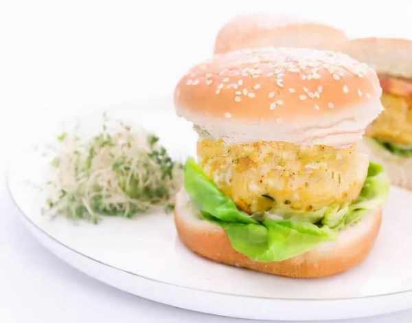 5.在漢堡胚1/3高處橫切後,在面包體內部塗上椰子油(奶素可塗牛油)熱鍋燒熱後,塗油處向下幹煎1分鐘,塗上您喜歡的醬汁,素沙拉醬,番茄醬,芥末醬等。