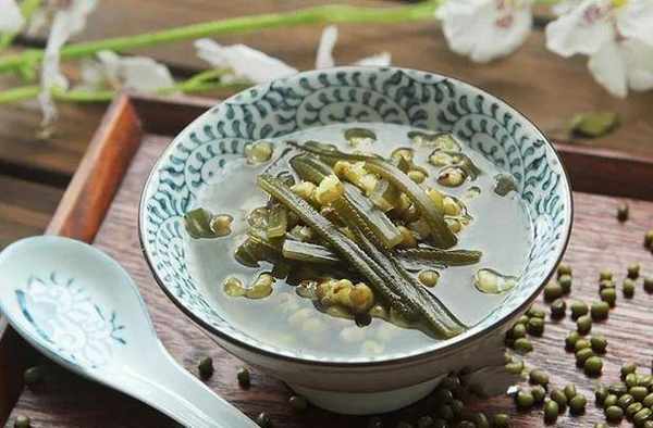 食材:綠豆100克、海帶絲80克、陳皮1小塊、冰糖