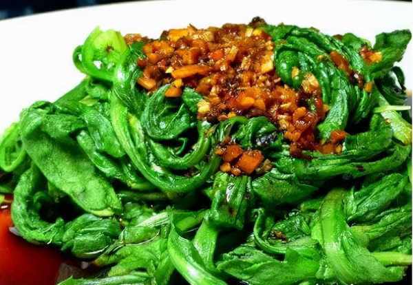 3.加入醬油,蠔油,翻炒片刻,加入蒜沫。最後撒鹽,出鍋裝盤即可。
