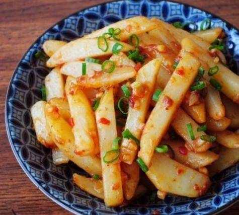 材料:土豆、生抽、香醋、素蠔油、剁椒、細砂糖、生粉、薑、蒜、蔥
