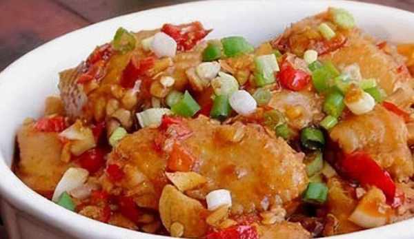 2:鍋裡放入薑粒,蔥段,青紅椒粒炒一下倒入炸好的蝦子調味翻炒即可裝盤