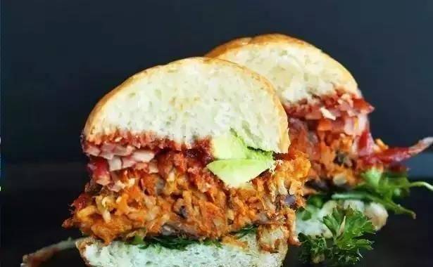 豆腐漢堡材料:硬豆腐1盒、紅薯200克、面包屑20克、孜然粉½茶匙、鹽½茶匙、黑胡椒½茶匙