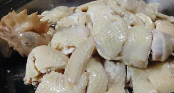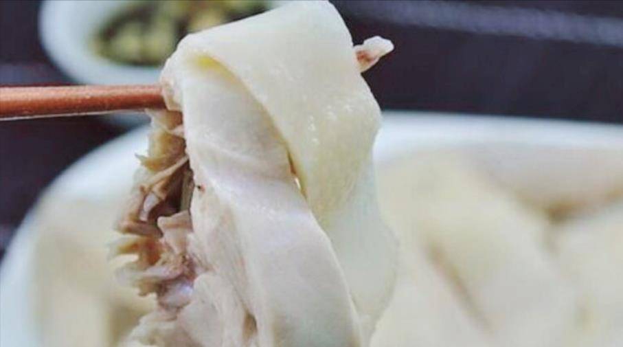 做好的白切雞,肉剛剛熟,骨頭還帶著血絲,為瞭追求這種極致的鮮美氣質,烹飪過程也是要精益求精,稍有不慎就可能會過火或者太生。