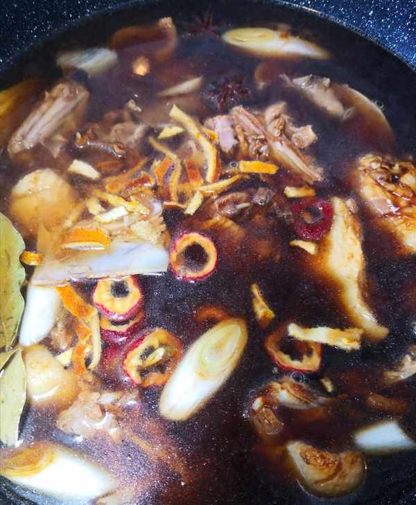 加適量開水,水要漫過鴨肉,加入陳皮、幹山楂,陳皮可去腥去異味,幹山楂可加快肉熟還能解油膩。