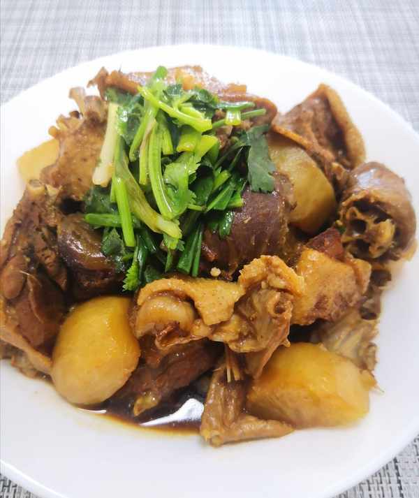 鴨子、蘿卜、蔥、薑、蒜、八角、香葉、幹山楂、陳皮、香菜