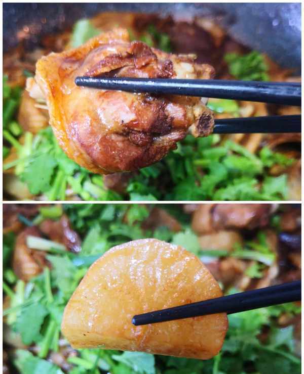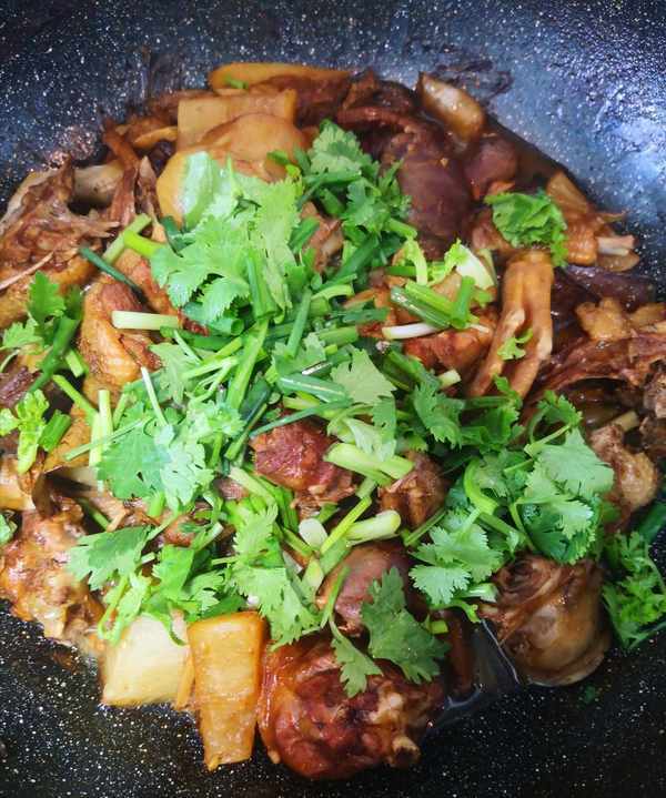 煮至鴨肉快熟時倒入蘿卜,加適量鹽、生抽提鮮,繼續煮至鴨肉軟爛,撒上蔥花、香菜即可。