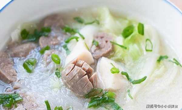 5、用湯鍋將水燒開後,倒入大白菜、粉絲、撒尿丸、墨魚丸,大火燒開後轉中火加入適量鹽,煮6分鐘左右即可出鍋裝盤;