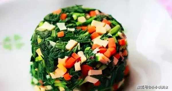 2.放熱水中焯1分鐘左右。撈出放涼水中過涼,再撈出來攥出水分。