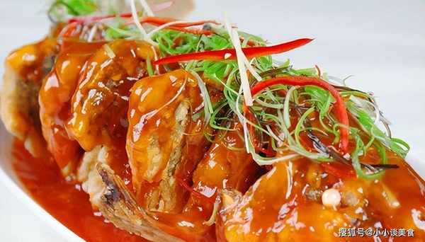 初加工:1、宰殺制凈的海鰻魚400克,切成長6厘米的段,加入鹽3克、料酒15克略微醃制,拍幹淀粉50克,入燒至六成熱的色拉油中炸至色澤金黃,撈出控油。