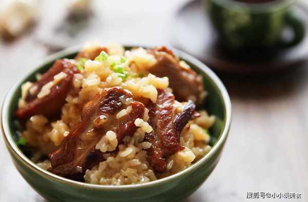 6. 大米洗幹凈,放進電飯煲中,加入適量清水。煮至微滾,開始冒小泡時,加入步驟5醃制好的咸魚和臘腸。蓋上煲蓋,煮至8成熟時,加入切好的蘆筍粒,煮至飯熟即可。
