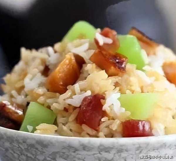 配料大米100克 咸魚25克 臘腸1根 蘆筍150克 白砂糖5克 料酒10ml 食用油 15 ml 醬油15 ml