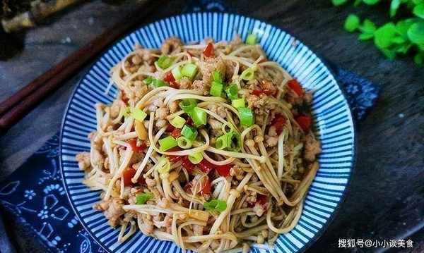 食材:金針菇300克,剁椒2勺,肉餡100克,醬油2勺,鹽1克