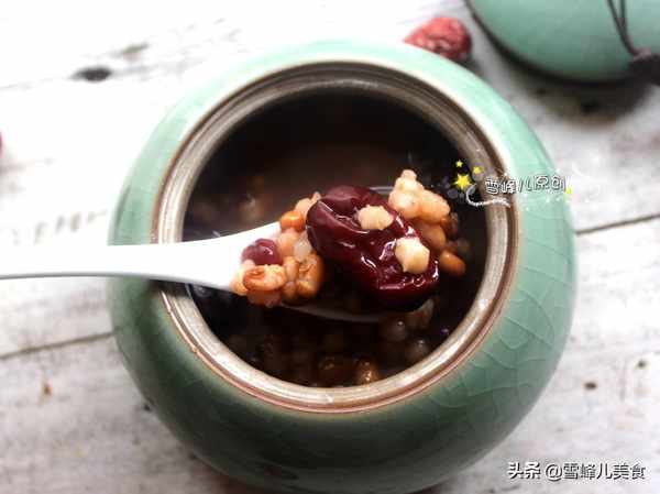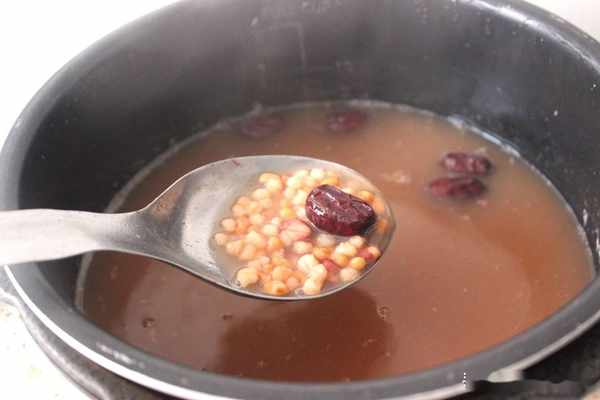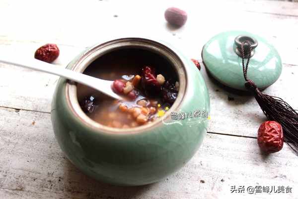 煮粥,用電鍋或者電壓力煲都很方便,可以提前預約,所有食材一起放入即可。如果沒有電鍋或者電壓力煲,用普通的鍋就複雜一些也費時一些,要把食材按照它的好熟度來區分,先把豆類煮得差不多,再放入紅棗才行。因為食材的好熟度不同,如果普通的鍋全部放入,好熟的食材就會煮得稀爛,而難熟的食材會不熟。