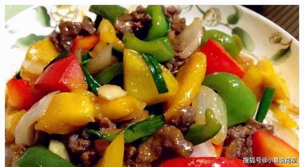 原料:牛肉、黃椒、蔥、紅椒、青椒、蔥、薑、蒜、油、鹽、生抽、料酒、蠔油、雞精、十三香。