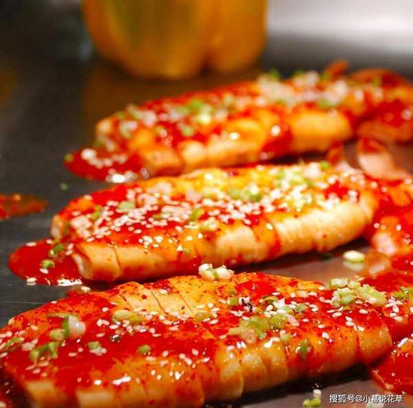 3.取鐵板燒至90%熱,攤開一張折成小船的錫紙,將直刀沿醃好的魷魚筒頭尾相隔1厘米的距離放上,放入盤中.箔紙,倒入準備好的醬汁,即可食用,撒上蔥花即可食用。