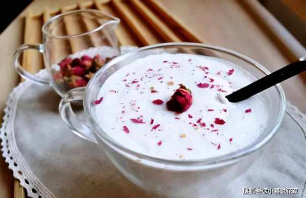 材料糯米40克、花生100克、玫瑰花5朵、牛奶250克、椰漿250克