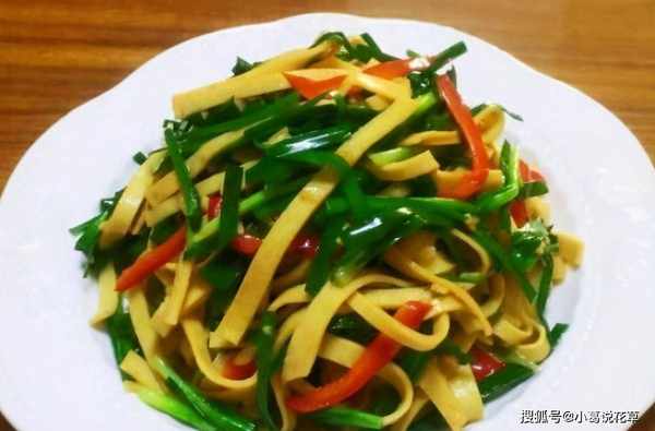 4.將洗凈的千張焯水加入炒茶樹鍋中