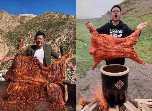 第二,2位青海土豪:藏地九哥、雪茸堂。吊車做燒烤,蟲草煮火鍋,枸杞當零食。網友們戲稱“青海牛羊不怕狼,最怕九哥雪茸堂”,他們制作過的牛羊數不清,誰學誰破產,“豪橫的彬老頭”就是模仿翻車的例子。