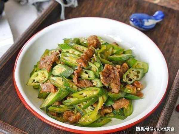 食材:梅花肉100克、秋葵200克、尖椒2個、生薑絲少許、鹽適量、生抽2茶匙、老抽數滴、淀粉少許、白糖少許