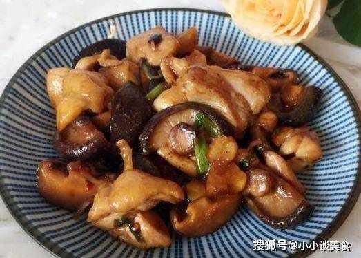 3.雞塊煮熟後,加入香菇繼續煮;最後,我們加鹽(如果多汁,可以用大火打),攪拌均勻,然後從鍋中取出。