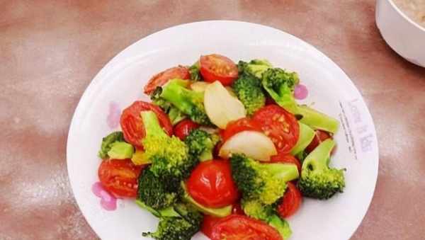 食材:西蘭花250g水果番茄150g蒜2瓣油適量鹽適量生抽適量白糖適量