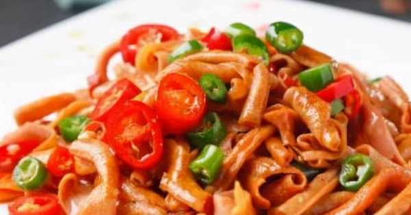 食材:脆鴨腸、小香芹、薑蒜、豆豉、幹椒節、青紅尖椒、色拉油、味精、雞精、鹽、醬油、料酒、蠔油、香油