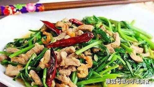 配料:空心菜、豬肉、蒜頭、幹辣椒、鹽、生抽、蠔油、胡椒粉、淀粉、雞粉。