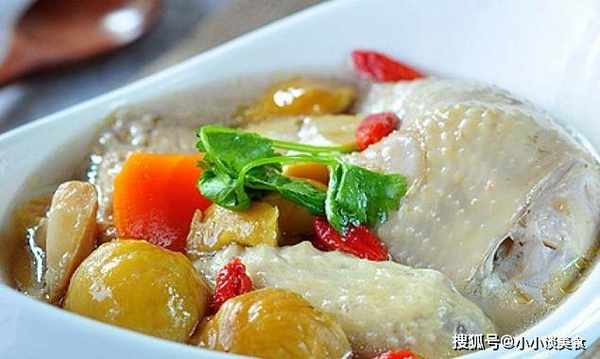 雞半隻、栗子10個、胡蘿卜1根、頭2個、生薑2片、西洋參8克、枇杷20個、鹽1.5茶匙、胡椒粉1茶匙。