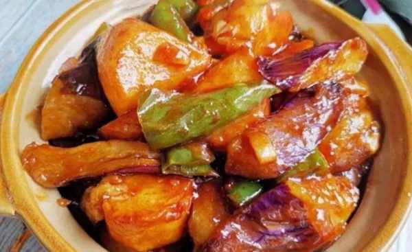 材料:長茄子1個、土豆2個、青椒2個、蒜末1湯匙